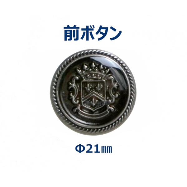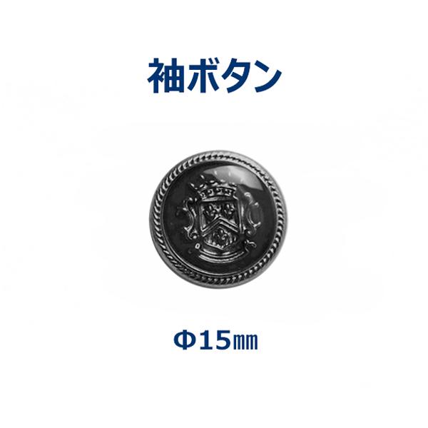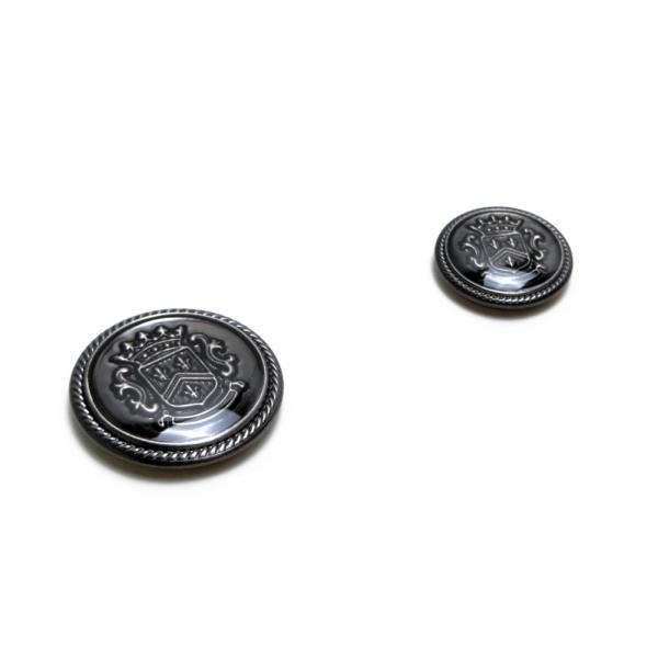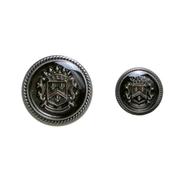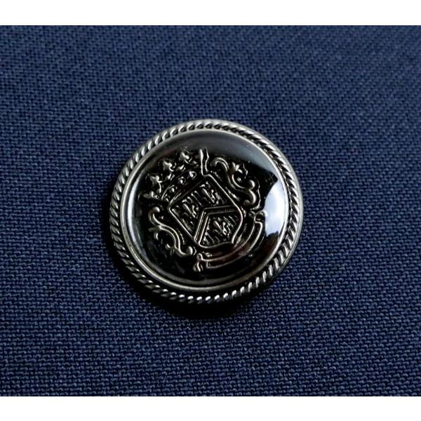ブレザー用ボタンE-2【ガラス調 ブラックシルバー(いぶし)】紋章柄メタルボタン