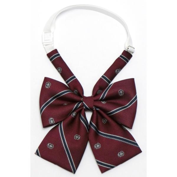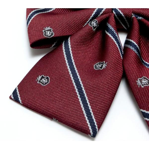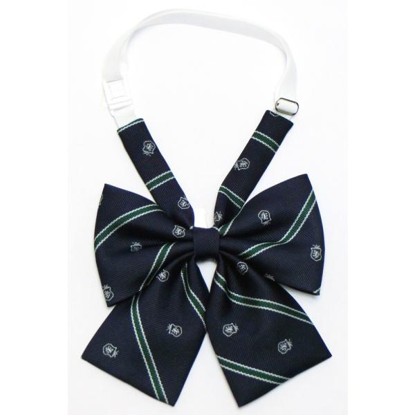 トラディショナルなクレスト柄のダブル蝶タイ型スクールリボン