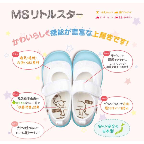 2足以上で5%OFF 土日祝出荷対応 ムーンスター moonstar キッズ 上履き 上靴 リトルスター 01 02 ゴムバンド マジックテープ 男の子 女の子 抗菌防臭 速乾 日本製