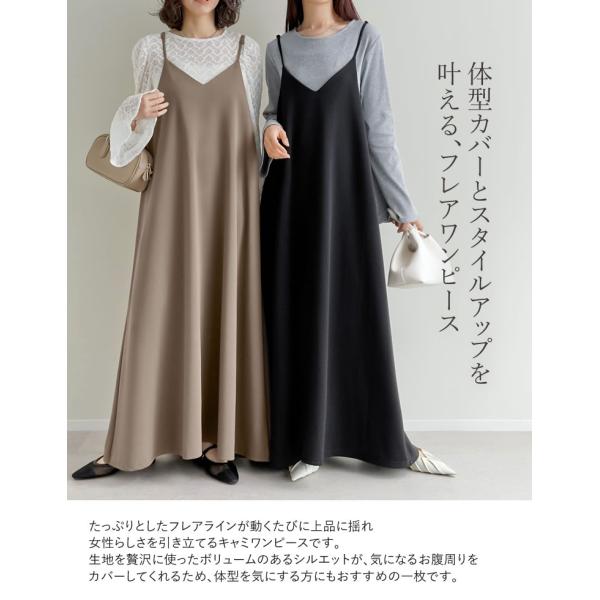 ブラック ベージュ モカグレー チャコールグレー アイボリーベージュ リボンブラック リボンアイボリベージュ リボンベージュ リボンモカグレー リボンチャコールグレー ベアブラック ベアアイボリベージュ ベアベージュ ベアモカグレー ベアチャコールグレー SCサイズ Mサイズ MTサイズ Lサイズ XLサイズ キャミワンピース ワンピース フレア フレアワンピース ジャンパースカート ジャンスカ ストレッチ ポンチ ジョーゼットポンチ マキシ丈 レイヤード 秋まで着れる イージーケア マタニティ ママ 妊婦 ゆったり 体型カバー ノンアイロン シワになりにくい 手洗いできる 2026春夏 爆買