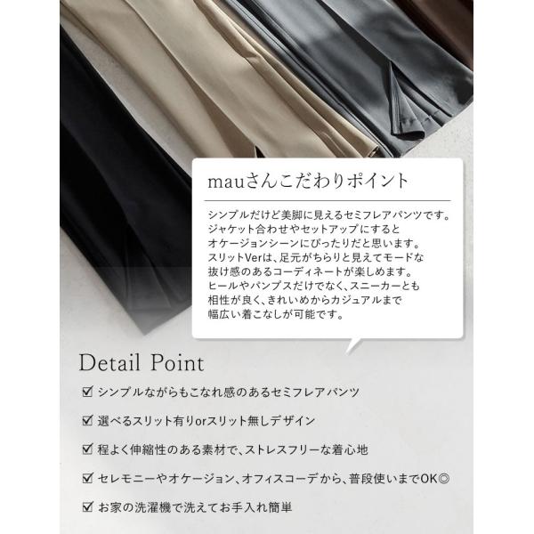 ブラック ブラウン チャコールグレー グレージュ キャメルベージュ アイボリー ブラックスリット チャコールスリット グレージュスリット SCサイズ Mサイズ MTサイズ Lサイズ パンツ スラックス セミフレア ツイルパンツ ストレッチ セットアップ対応 スリット有り スリットパンツ フロントスリット オケージョン 結婚式 学校行事 二次会 入学式 卒業式 入園式 卒園式 ママ 七五三 お宮参り 母親 ママスーツ スーツ セレモニー オフィスカジュアル 通勤 爆買
