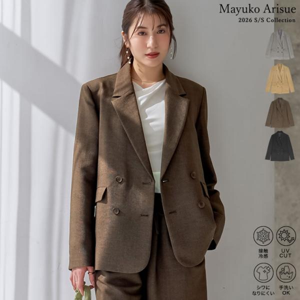 ジャケット アウター レディース 4色 M/L ダブルジャケット テーラード UVカット 手洗い可能 防シワ 接触冷感 裏地付き ポケットあり 春夏