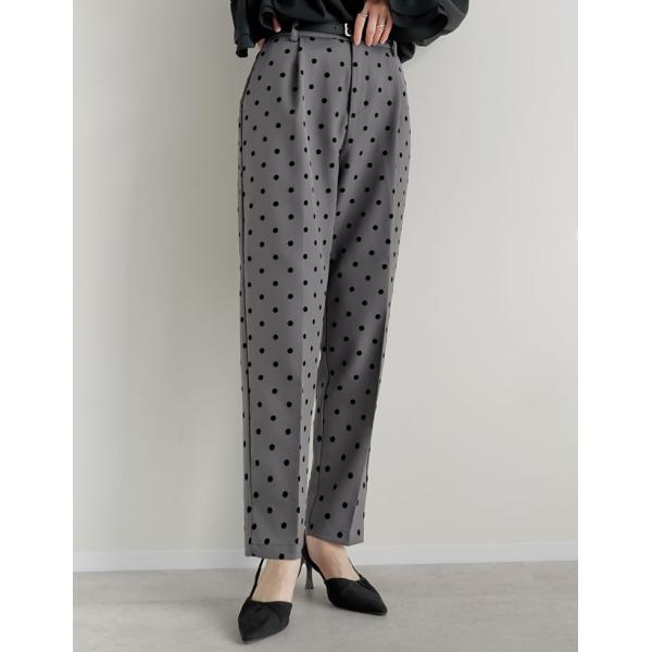 フロッキードットカットツイルテーパードパンツ