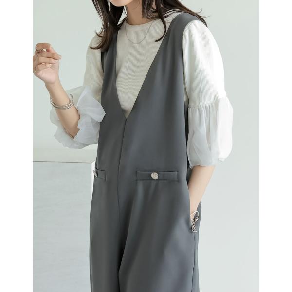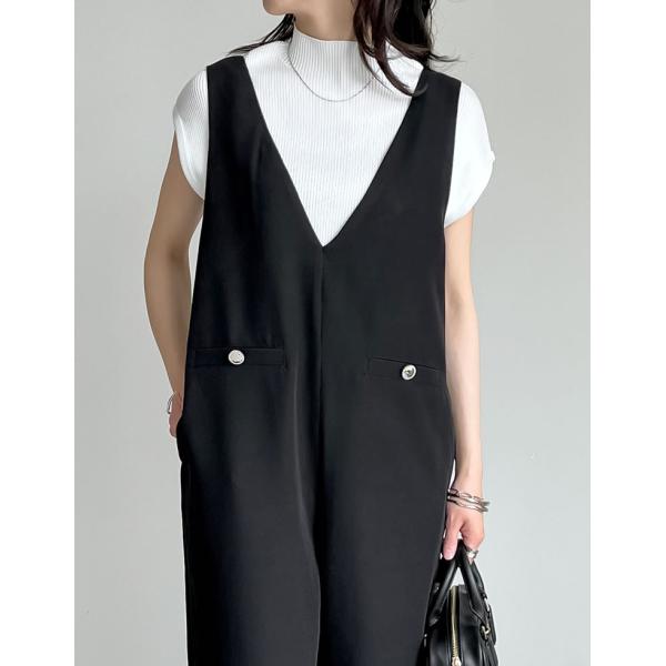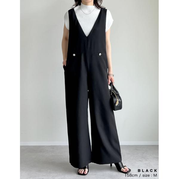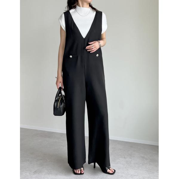 Vネック レディース オールインワン サロペット 金ボタン 深Vネック 着痩せ Iライン オケージョン 通勤 低身長 高身長 2025春夏