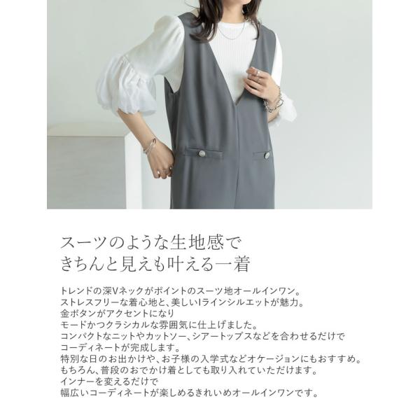 ブラック チャコールグレー SCサイズ Mサイズ MTサイズ Lサイズ Vネック オールインワン オーバーオール サロペット 金釦 金ボタン 深Vネック 着痩せ Iライン オケージョン 結婚式 学校行事 二次会 入学式 卒業式 入園式 卒園式 ママ 七五三 お宮参り 母親 ママスーツ スーツ セレモニー 通勤 オフィスカジュアル SCサイズ 低身長向けSサイズ対応 丈が短い MTサイズ 高身長向けMサイズ対応 丈が長い トールサイズ 2025春夏 2025S/S 2025SS 爆買