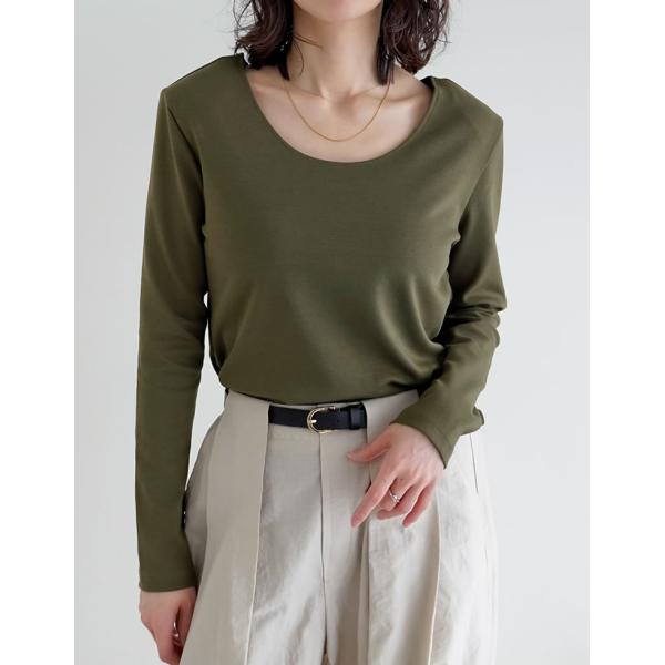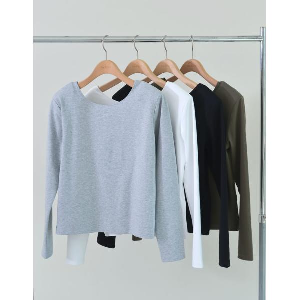 ブラック ホワイト グレー カーキ Mサイズ Lサイズ 前後2WAY トップス 長袖 カットソー Tシャツ パワーショルダー 丸首 クルーネック 肩パッド Uネック クルーネック バックオープン バックシャン 接触冷感 ひんやり コンパクト フィット バックシャン 前後2WAY オフィスカジュアル 通勤 冷感マシュマロカットソー マシュマロ 春夏 SS S/S 爆買