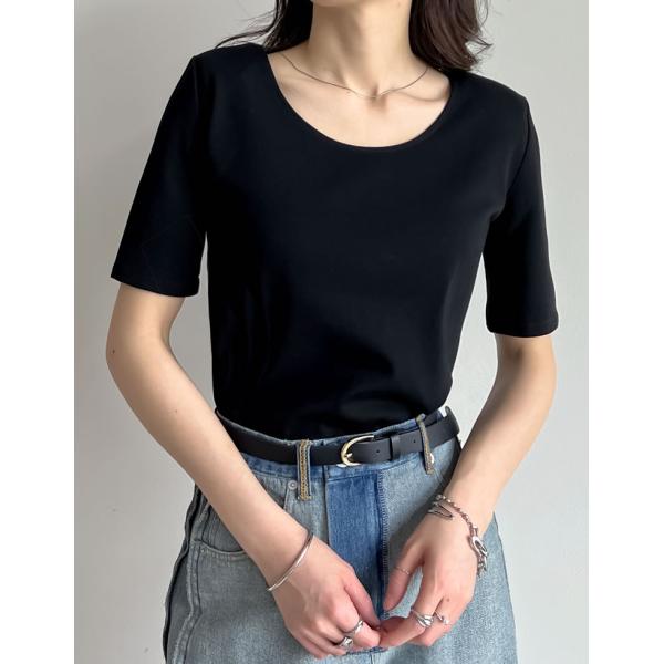 半袖 カットソー トップス レディース 6色 M/L クルーネック パワーショルダー 肩パット 前後2WAY 接触冷感 春夏