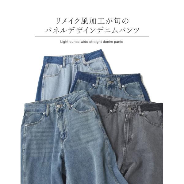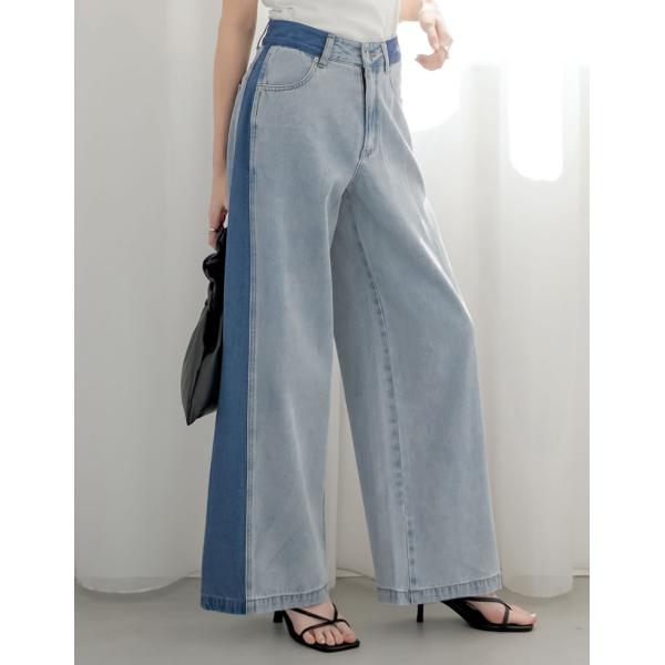 グレー×ブラック ブルー×ブルー ライトブルー×ブルー ブルー×ネイビー SCサイズ Sサイズ MCサイズ Mサイズ MTサイズ Lサイズ デニム ジーンズ Gパン ジーパン ヴィンテージライクデニム ヴィンテージ調 ヴィンテージ風 加工デニム パンツ デニムパンツ ワイドデニム ワイドパンツ ライトオンス サマーデニム バイカラーデニム 配色デニム リメイク風 パネル ウォッシュ加工 コットン100% 綿100% 体型カバー 高梨臨さん着用 タイアップ コラボ SCサイズ 低身長向けSサイズ対応 丈が短い MTサイズ 高身長向けMサイズ対応 丈が長い トールサイズ 大きいサイズ LL XL 2025春夏 2025S/S 2025SS 爆買