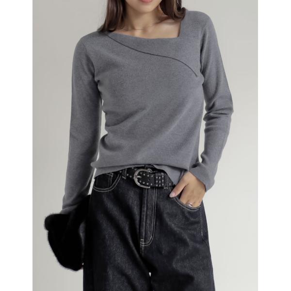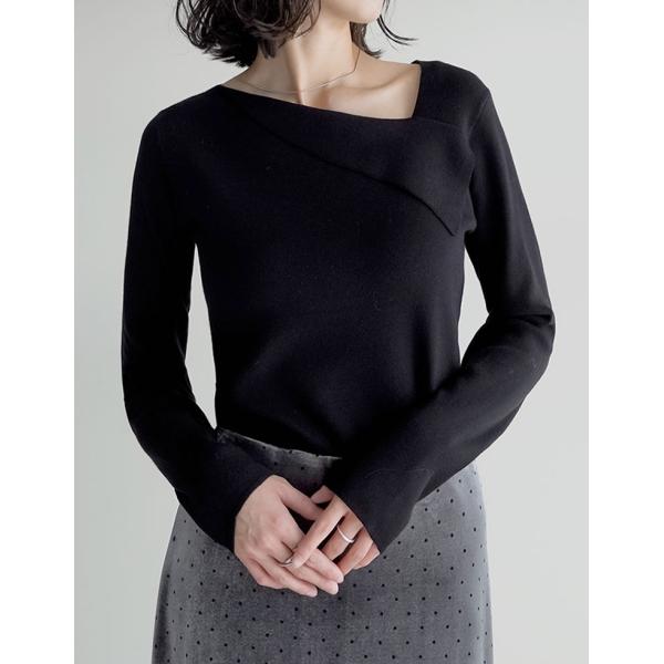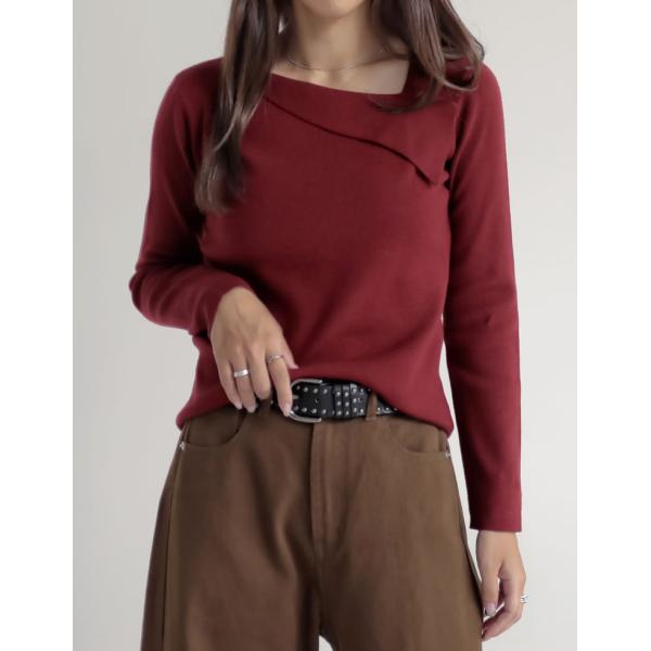 アシンメトリーネックニットトップス