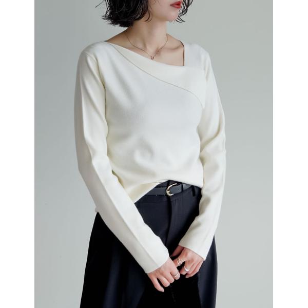 ブラック アイボリー チャコールグレー バーガンディ Mサイズ Lサイズ アシンメトリー ニット トップス セーター アシンメトリーネック ストレッチ コンパクトニット 長袖 オフィスカジュアル 通勤 オフィス ハイゲージ 総針編み 2025秋冬 2025A/W 2025AW 爆買