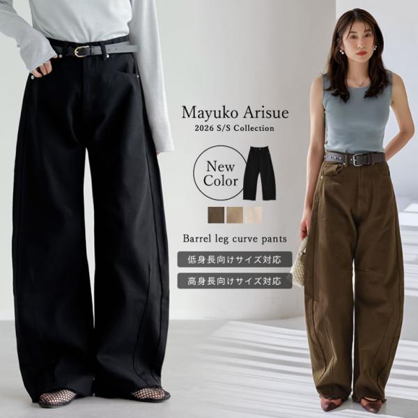 ブラック チャコールグレー グレージュ ブラウン ピンク ネイビー SCサイズ Mサイズ MTサイズ Lサイズ カーブパンツ カーブスラックス ワイドパンツ パンツ スラックス バレルレッグ バレルレッグパンツ 体型カバー ソフトツイルシリーズ オフィスカジュアル 通勤 オフィス SCサイズ 低身長向けSサイズ対応 丈が短い MTサイズ 高身長向けMサイズ対応 丈が長い トールサイズ タックパンツ タックカーブパンツ タックバレルレッグパンツ ダブルタック ツータック オールシーズン 春夏 SS S/S 2025秋冬 2025A/W 2025AW 爆買