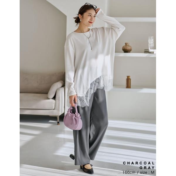 パンツ スラックス レディース セミフレア ストレッチ セットアップ 低身長 高身長 2025春夏[mb]