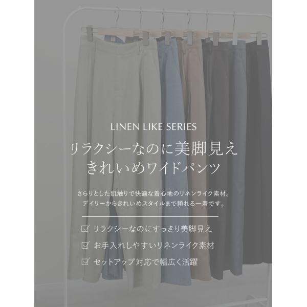 ワイドパンツ レディース パンツ 低身長 高身長 セットアップ対応 リネンタッチ 麻調 ポケットあり 体型カバー ウエストバッグゴム 春夏