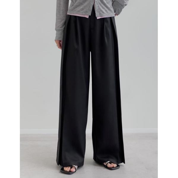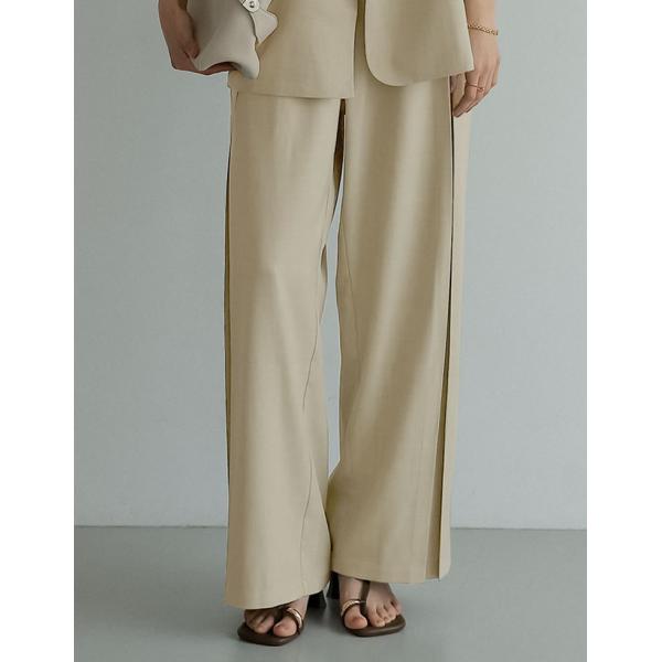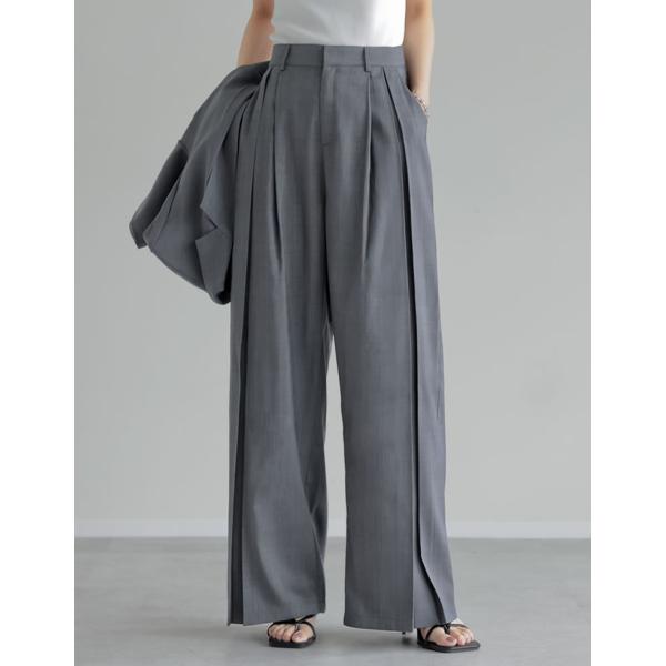 リネンライクプリーツタックワイドパンツ
