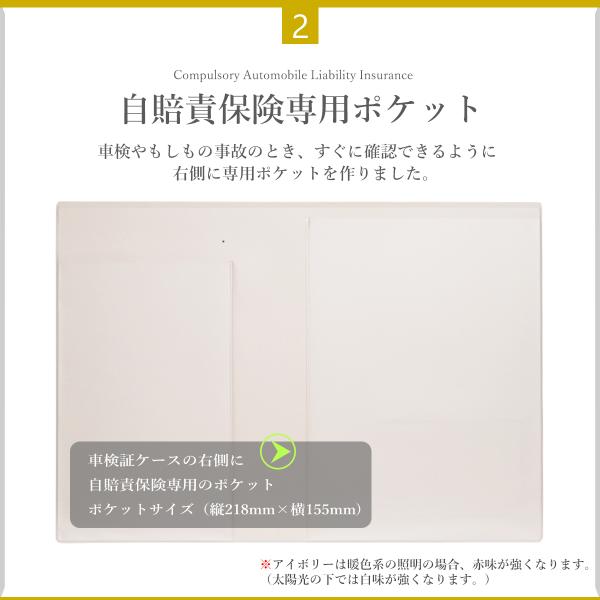 コンパクトになった電子車検証に対応する専用ポケットを設けた車検証ケースです。