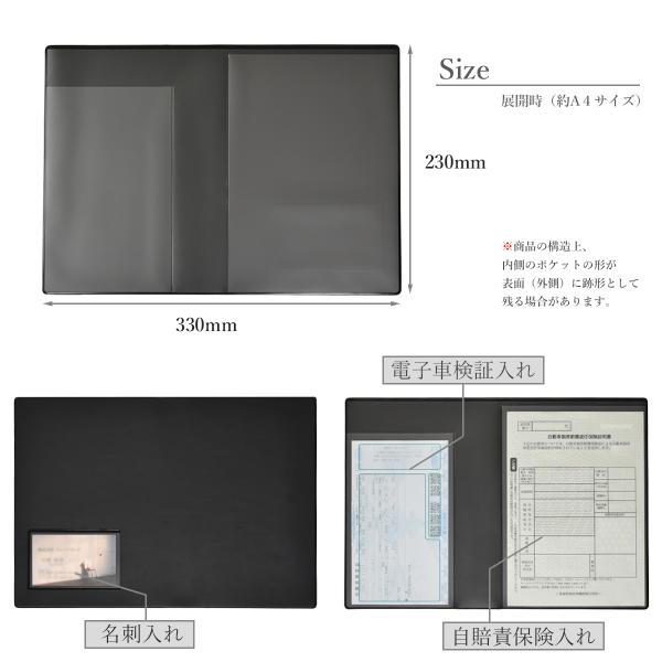 コンパクトになった電子車検証に対応する専用ポケットを設けた車検証ケースです。