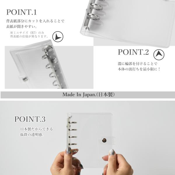 システム手帳 日本製 ミニサイズ ポケットサイズ B7 リフィル 下敷き 付き 透明 6穴 クリアバインダー_手帳+下敷きリフィルB7_