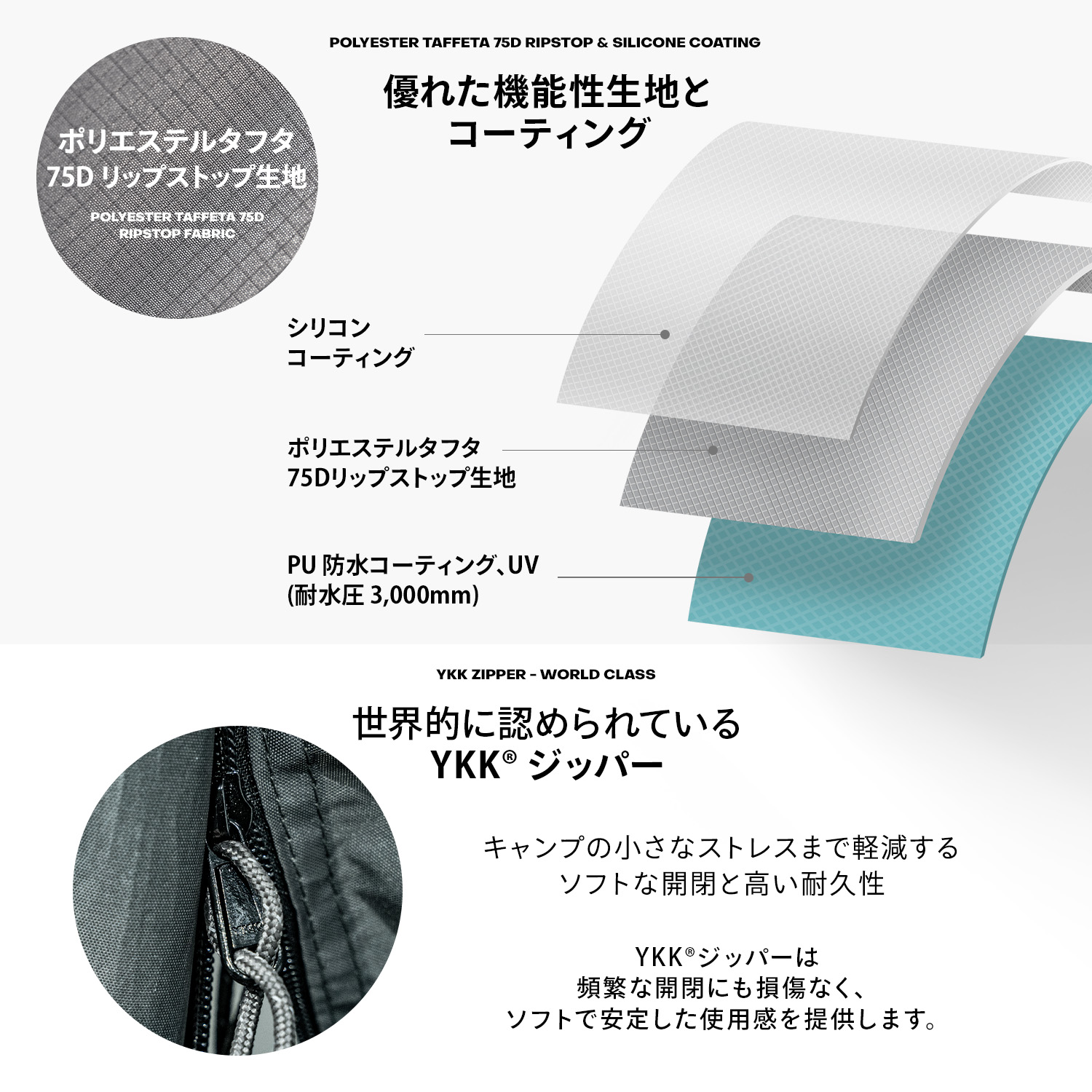 ●重量:1_本体:18.5kg 2_インナーテント、ループ、グラウンドシート、ポール台:8.5kg/ペグ、ロープ:2kg 計 30kg