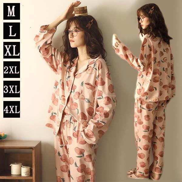 綿 大きいサイズ パジャマ ルームウェア レディース 上下セット 春 夏 秋 冬 前開き ピーチ 部屋着 寝巻き あったか 可愛い おしゃれ かわいい ピンク 3L 4L