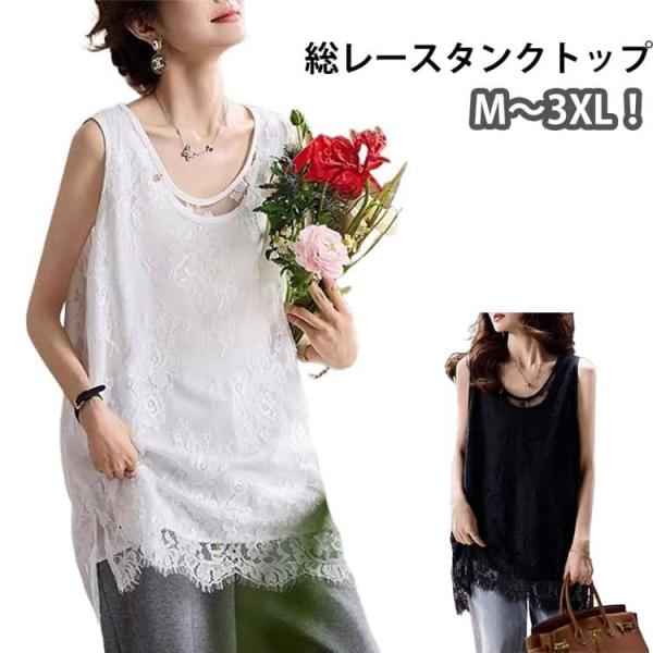 総レース タンクトップ インナー トップス レディース ノースリーブ 裾レース タンクトップ お尻が隠れる ロング丈 レイヤード 重ね着 体型カバー