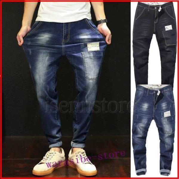 新作 デニム メンズ ジーンズ サルエル ストレッチ ボトムス ジーパン ファッション メンズ デニムパンツ インディゴ サルエルパンツ テーパード