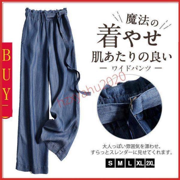 ワイドパンツ レディース ボトムス ガウチョパンツ フェミニン ゆったり ズボン 涼しい ストレート リラックス 柔らかい 接触冷感 デニム