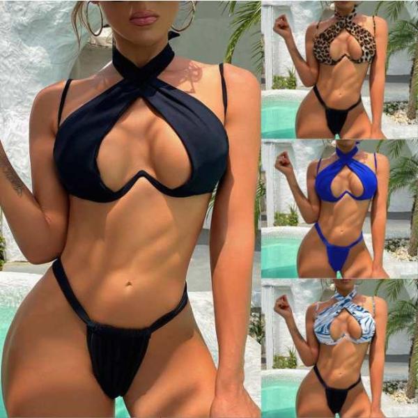 ブラジリアン ビキニ マイクロビキニ 水着 レディース かっこいい 個性的 カットオフ ふんどし風 黒 青 無地 ヒョウ柄 レオパー