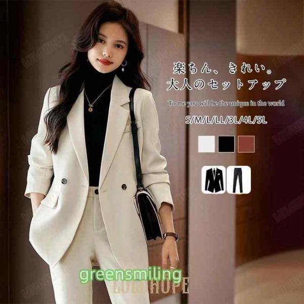 白 黒 パンツスーツ スーツ レディース セットアップ ビジネススーツ 洗える 2点セット 大きいサイズ フォーマル 就活 面接 オフィス 入学式 母の日 ママスーツ