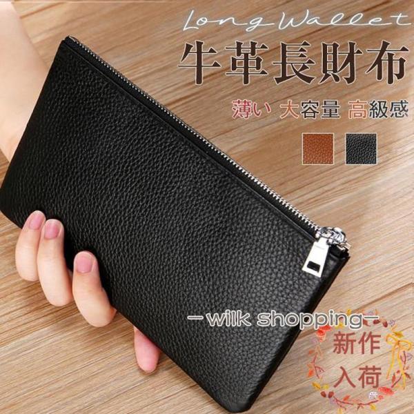 長財布 メンズ ロングウォレット 薄い 大容量 財布 牛革 薄型 ファスナー お札入れ 携帯入れ カード 無地 プレゼント 父の日 40代 50代