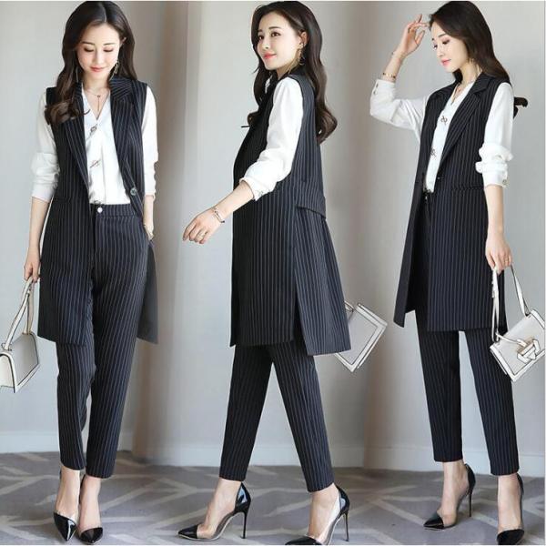 パンツスーツ レディース パンツ セットアップ ロング ロング丈 ジレ パンツ テーパードパンツ