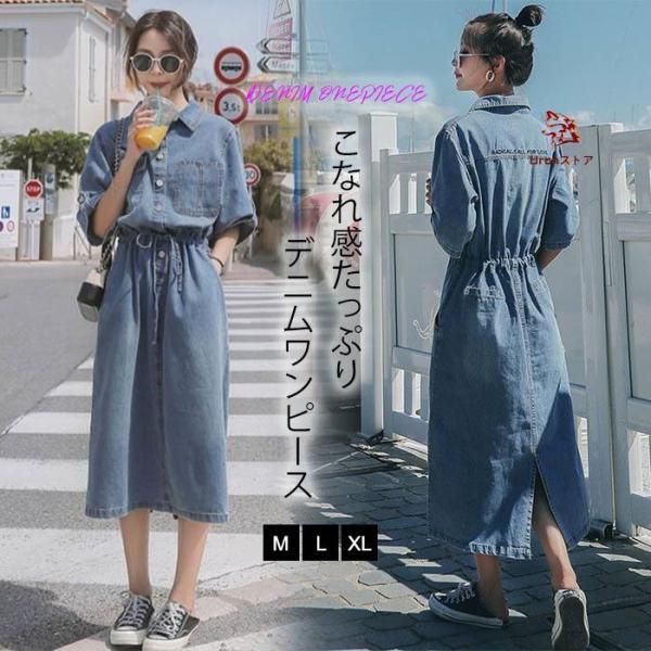 レディース デニム ワンピース ワンピ デニムワンピース 半袖 デニムワンピ 春夏 ロングワンピース 着痩せ カジュアル 可愛い ゆったり 夏