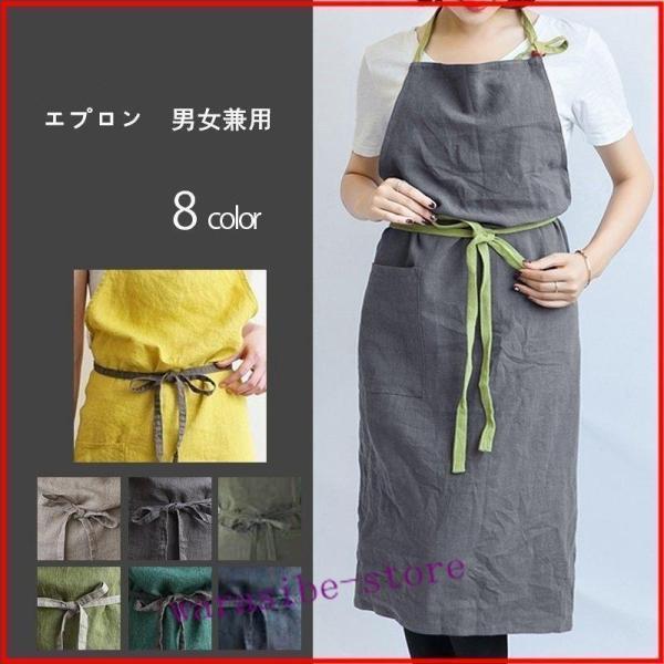 エプロン おしゃれ リネン 男女兼用 カフェ ガーデニング キッチン 女性用 ポケット付き 北欧 シンプル 軽量 8 colors