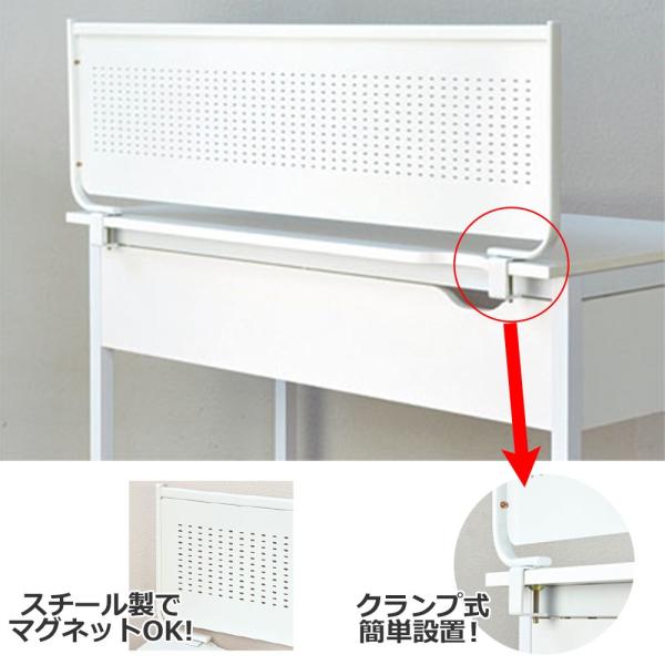 スチール製でマグネットが使えるトップパネル。クランプで簡単に取り付けられます。ホワイトのシンプルなデザインで空間を明るくします。【対応商品コード】白_410090