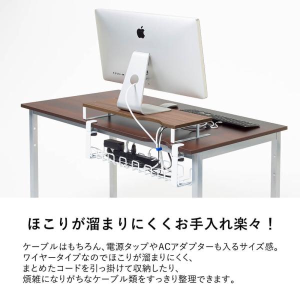 ガラージオリジナルのケーブルトレーLサイズ。ワイヤータイプなのでほこりが溜まりにくく、まとめたコードを引っ掛けて収納したり、煩雑になりがちなケーブル類をすっきり整理できます。PC周辺の接続機器が多い人におすすめのゆったりサイズです。シルバー:415454_ホワイト:434381_ブラック:435570