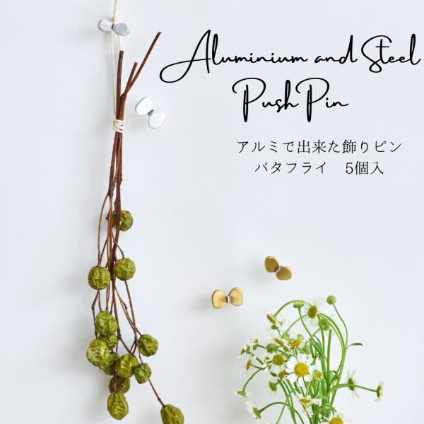 画鋲 ピン アルミでできた飾りピン 5個入り ディスプレイ用品 バタフライ インテリア雑貨 クリックポスト同梱可能
