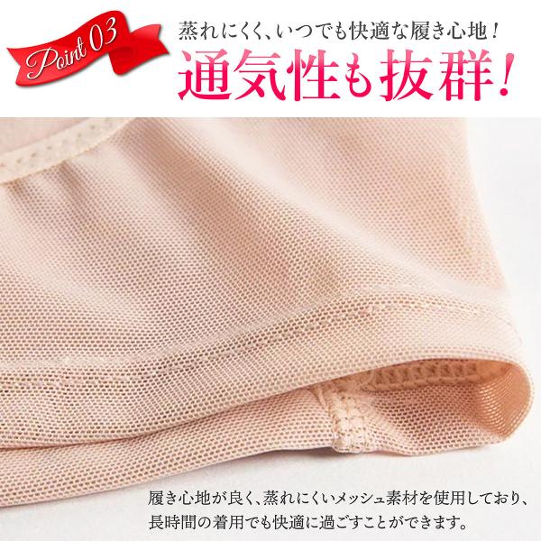 ヒップを持ち上げながら、骨盤を正しい位置にキープし、腰を引き締め、引き上げる。メッシュ素材で通気性も良く、夏にお勧めの補正下着です。