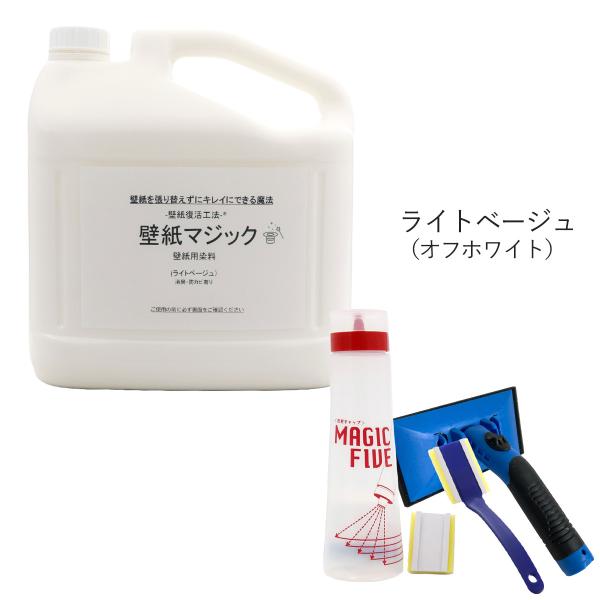 壁紙マジック 5kg+道具セット 壁紙 塗装 染料 無臭 消臭 防カビ ヤニ汚れ 黄ばみ補修 リフォーム DIY ペンキ 刷毛付き