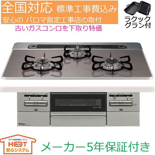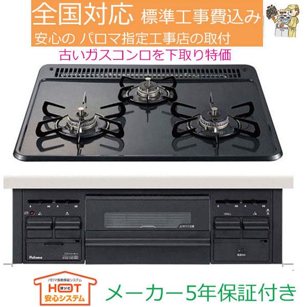 ビルトインガスコンロ 工事費込み 75cm パロマPD-509WS-75CK プロパン 都市ガス リプラ repla ビルトインコンロ ガスコンロ ガスレンジ lp 延長保証付き