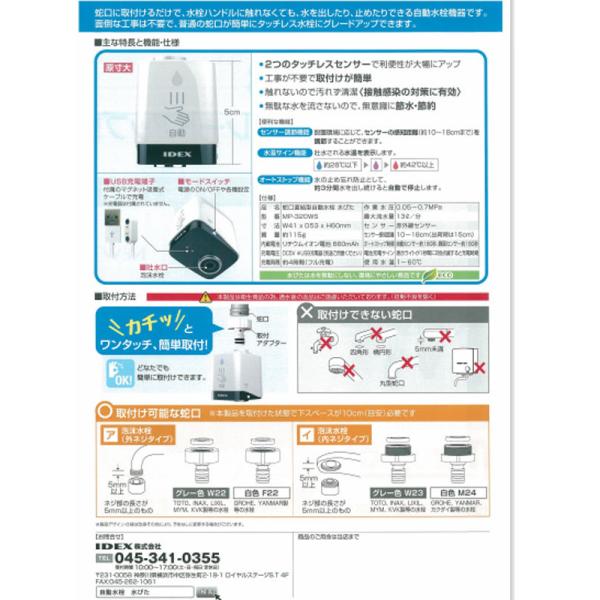 IDEX 蛇口直結型自動水栓 mizupita 水ピタ MP-320WS アイデックス