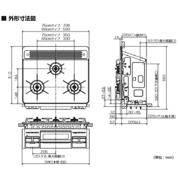 ビルトインコンロ 60cm 工事無し 本体のみ
