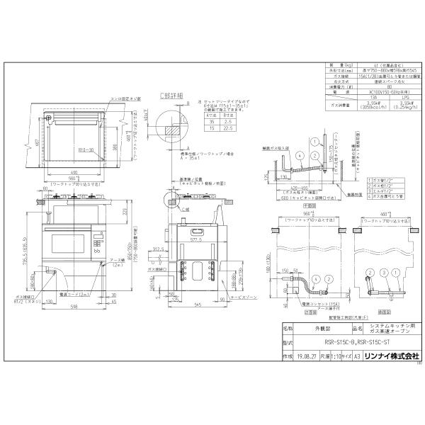 リンナイ ビルトインオーブン(コンベック) RSR-S15C-B 33L ビルトインガスオーブン