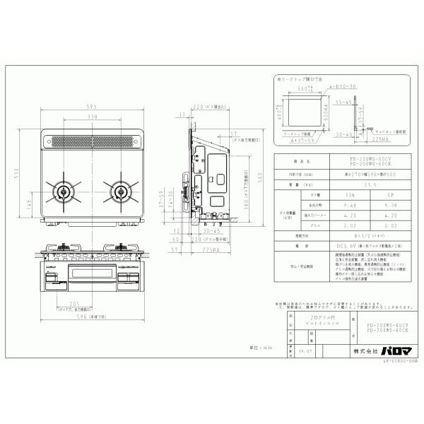 パロマ ビルトインガスコンロ シスト PD-200WS-60CK (Paloma)