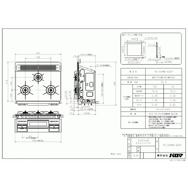 パロマ ビルトインコンロ リプラ PD-509WS-60CK (Paloma repla)