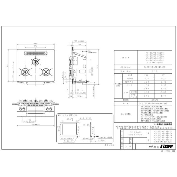 パロマ ビルトインコンロ フェイシスグランド PD-893WT-U60GH (Paloma FACEIS GRAND)