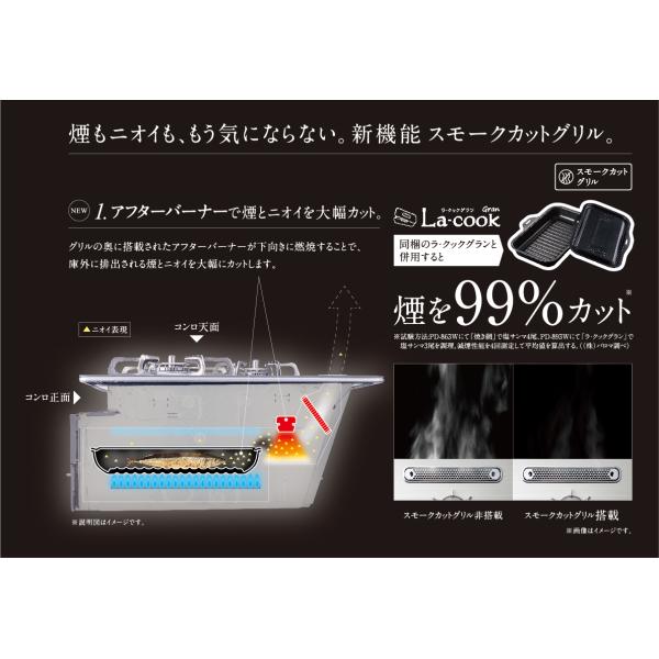グリルはスモークカット機能やラ・クックオートメニュー機能付き水無し両面焼きワイドグリル。