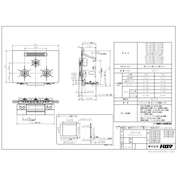 パロマ ビルトインコンロ フェイシスグランド PD-893WT-U75GA2 (Paloma FACEIS GRAND)