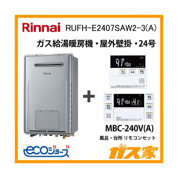 リンナイ RUFH-E2408AW2-6(A) エコジョーズ ガス給湯暖房用熱源機 フルオート 屋外壁掛型 床暖房6系統熱動弁内蔵 24号 リモコン別売