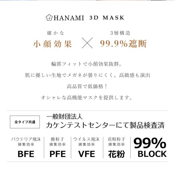 3D MASKは高密度フィルターを採用し、ウイルスや飛沫などを99%カットする高機能マスクです。<br>