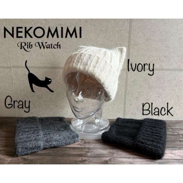 【最短当日発送】 帽子 猫耳 ニットワッチ ニット帽 ビーニー アンゴラテイスト リブ ネコ ねこ 締め付け感なし レディース 伸縮性 秋冬 【複数ご購入送料無料】