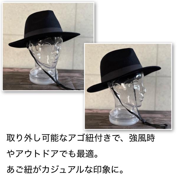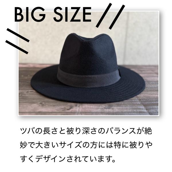 【最短当日発送】 帽子 大きいサイズ BIG XL つば広 上質 ウール メルトン 中折れ ハット 62cm フェドラ あご紐付き サイズ調整 男女 【複数ご購入送料無料】
